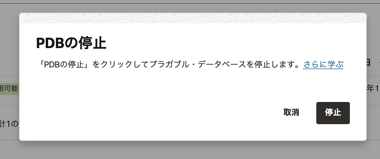 確認画面が表示されたら、PDB の停止 をクリックします。